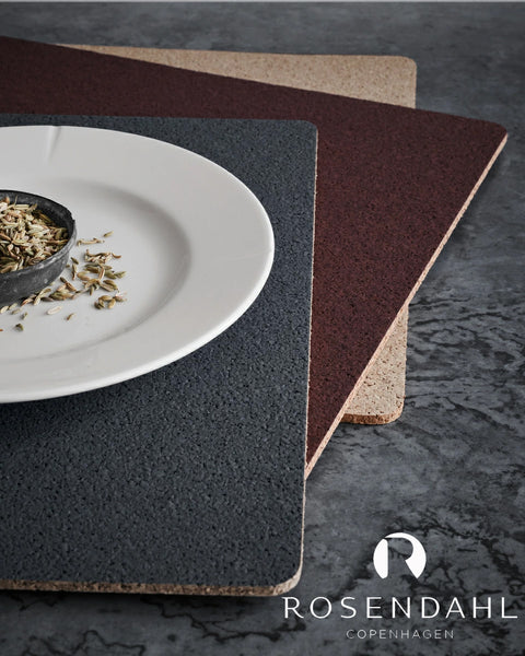 ローゼンダール社 コペンハーゲンより機能性と時代を超越したデザインを兼ね備えたコルクプレイスマット。FSC認証のコルクで作られたプレイスマットは、前面は落ち着いたサンド、ダークグレー、バーガンディ のカラーに塗装され、背面は自然なコルクの色をしています。コルクは疎水性素材なので、プレイスマットの汚れを簡単に落とすことができます。